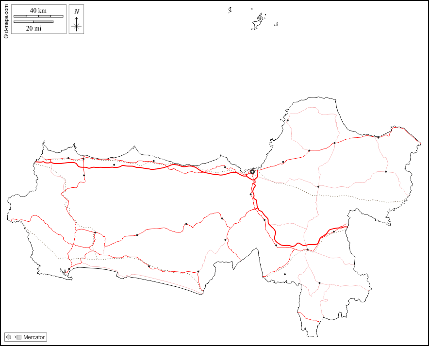 d-maps > Asia > Indonesia > Giava Centrale > contorni, principali città, strade, bianco