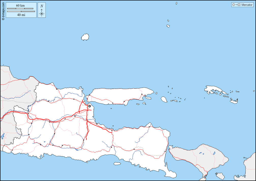 Asia > Indonesia > Giava orientale > frontiere, idrografia, principali città, strade