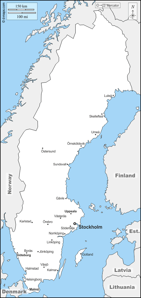 d-maps > Europa > Svezia > Svezia > frontiere, principali città, nomi