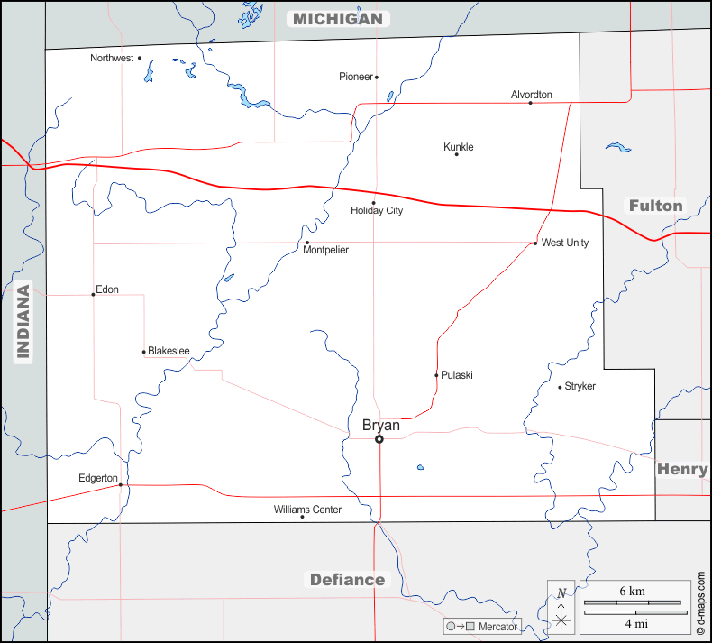 d-maps > Stati Uniti d'America (USA) > Ohio > Contea di Williams > frontiere, idrografia, principali città, strade, nomi