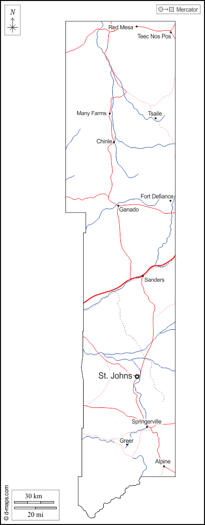 Stati Uniti d'America (USA) > Arizona > Contea di Apache > contorni, idrografia, principali città, strade, nomi, bianco