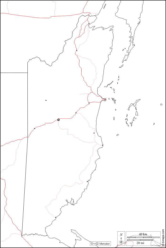 d-maps > Americhe > Belize > frontiere, principali città, strade, bianco