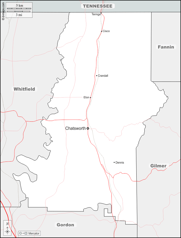 d-maps > Stati Uniti d'America (USA) > Georgia > Contea di Murray > frontiere, principali città, strade, nomi