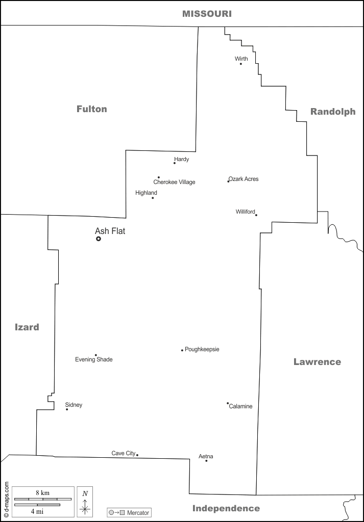 Stati Uniti d'America (USA) > Arkansas > Contea di Sharp > frontiere, principali città, nomi, bianco