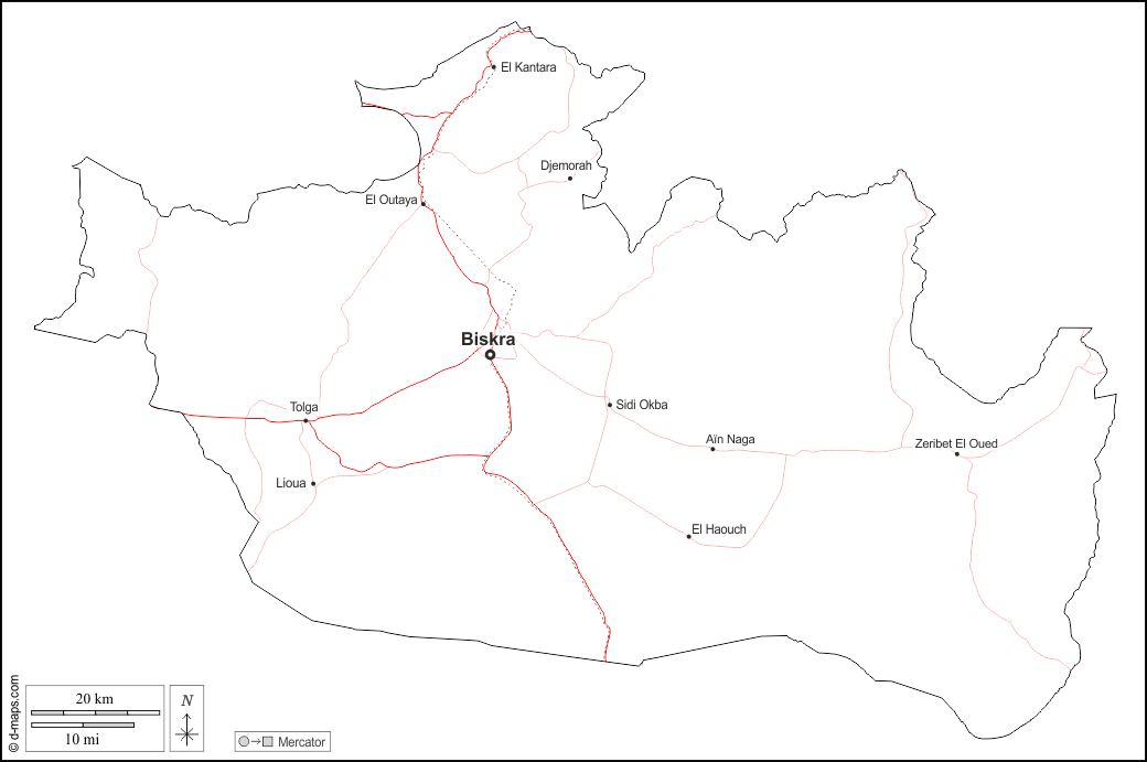d-maps > Africa > Algeria > Provincia di Biskra > contorni, principali città, strade, nomi, bianco