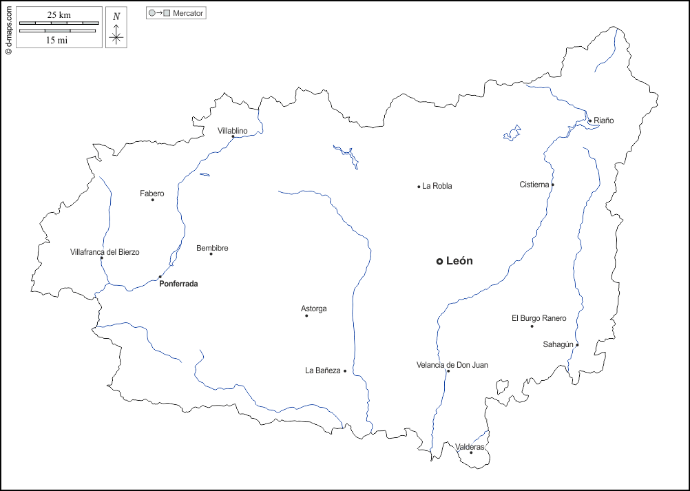 Europa > Spagna > León > contorni, idrografia, principali città, nomi, bianco