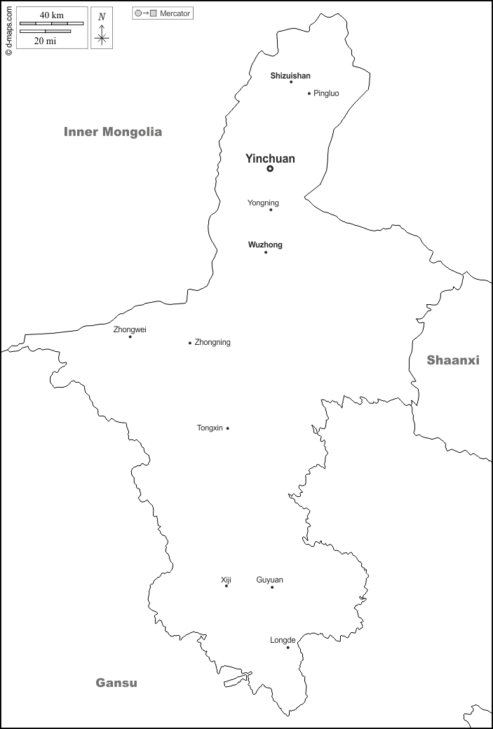 Asia > Cina > Ningxia > frontiere, principali città, nomi, bianco