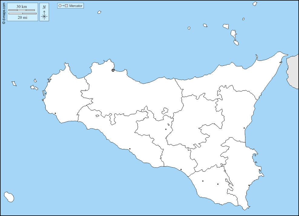 d-maps > Europa > Italia > Sicilia > frontiere, province, principali città