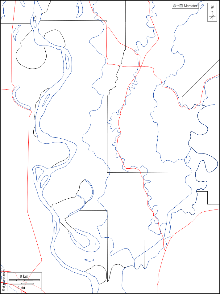 d-maps > Stati Uniti d'America (USA) > Mississippi > Contea di Issaquena > frontiere, idrografia, strade, bianco