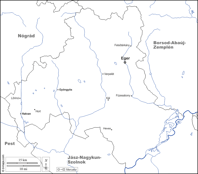 d-maps > Europa > Ungheria > Heves > frontiere, idrografia, principali città, nomi, bianco