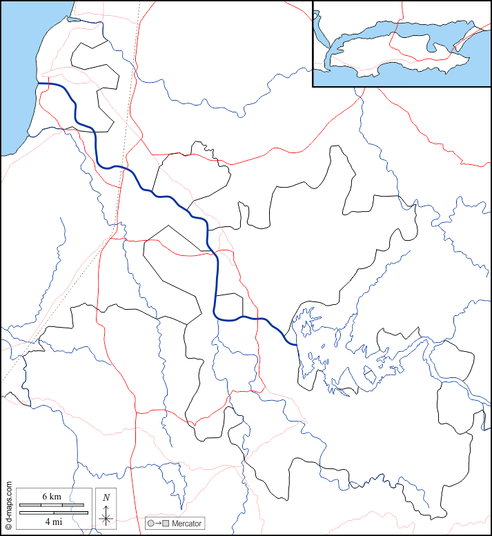d-maps > Asia > India > Dadra e Nagar Haveli e Daman e Diu > frontiere, idrografia, strade, bianco
