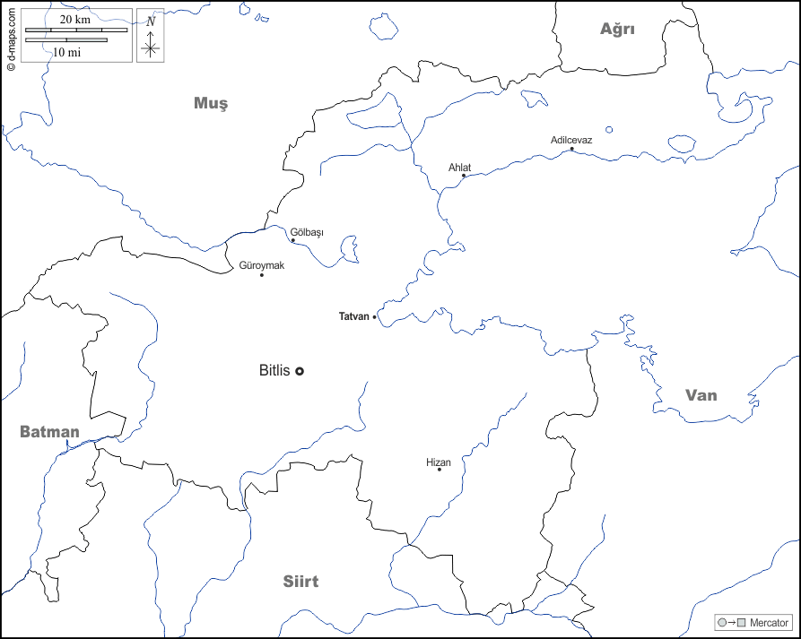 d-maps > Asia > Turchia > Bitlis > frontiere, idrografia, principali città, nomi, bianco