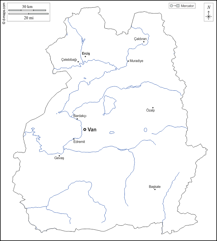 d-maps > Asia > Turchia > Van > contorni, idrografia, principali città, nomi, bianco