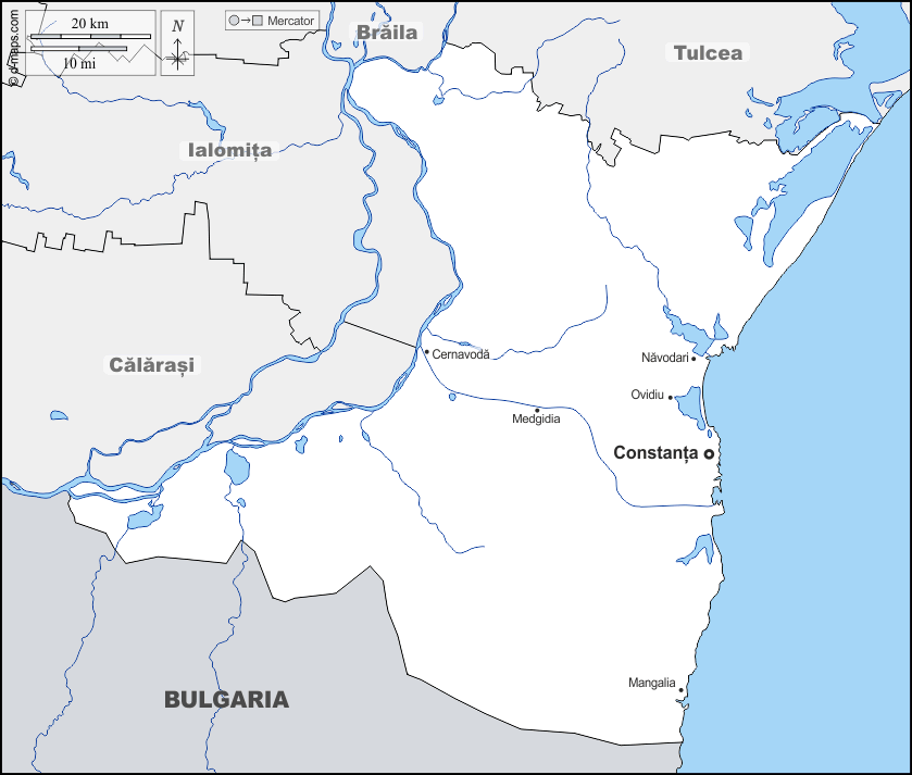 Europa > Romania > Constanța > frontiere, idrografia, principali città, nomi