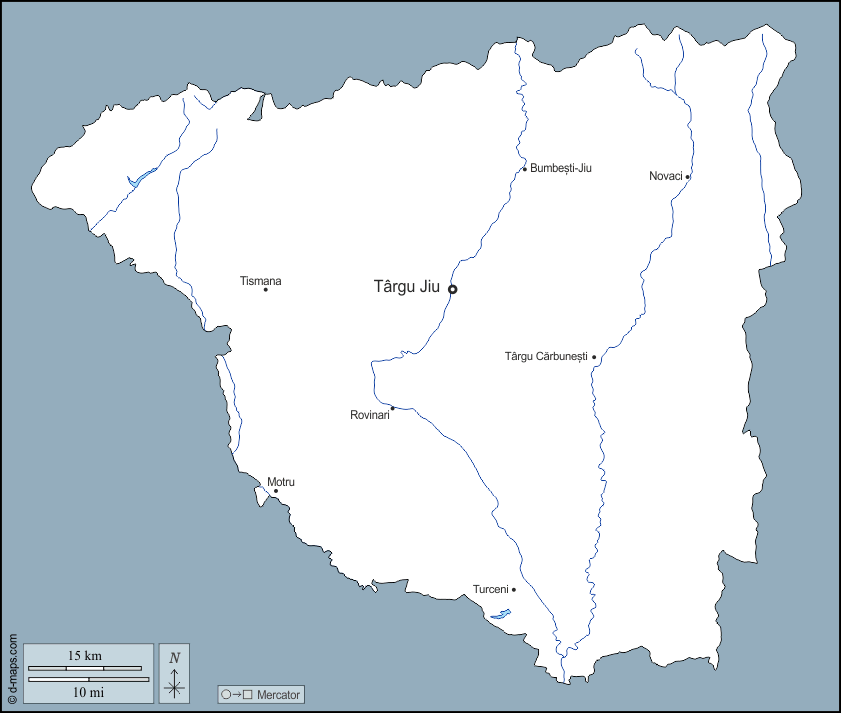 d-maps > Europa > Romania > Gorj > contorni, idrografia, principali città, nomi