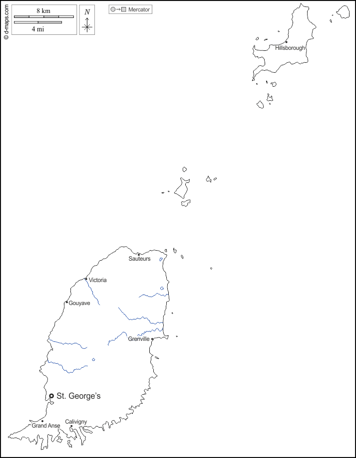 d-maps > Americhe > Grenada > litorali, idrografia, principali città, nomi, bianco
