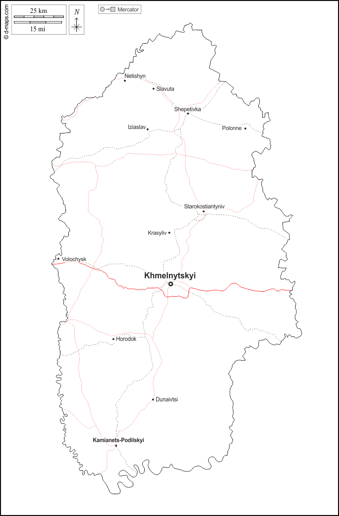 d-maps > Europa > Ucraina > Chmelnyckyj > contorni, principali città, strade, nomi, bianco