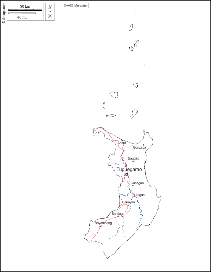 d-maps > Asia > Filippine > Cagayan > contorni, idrografia, principali città, strade, nomi, bianco