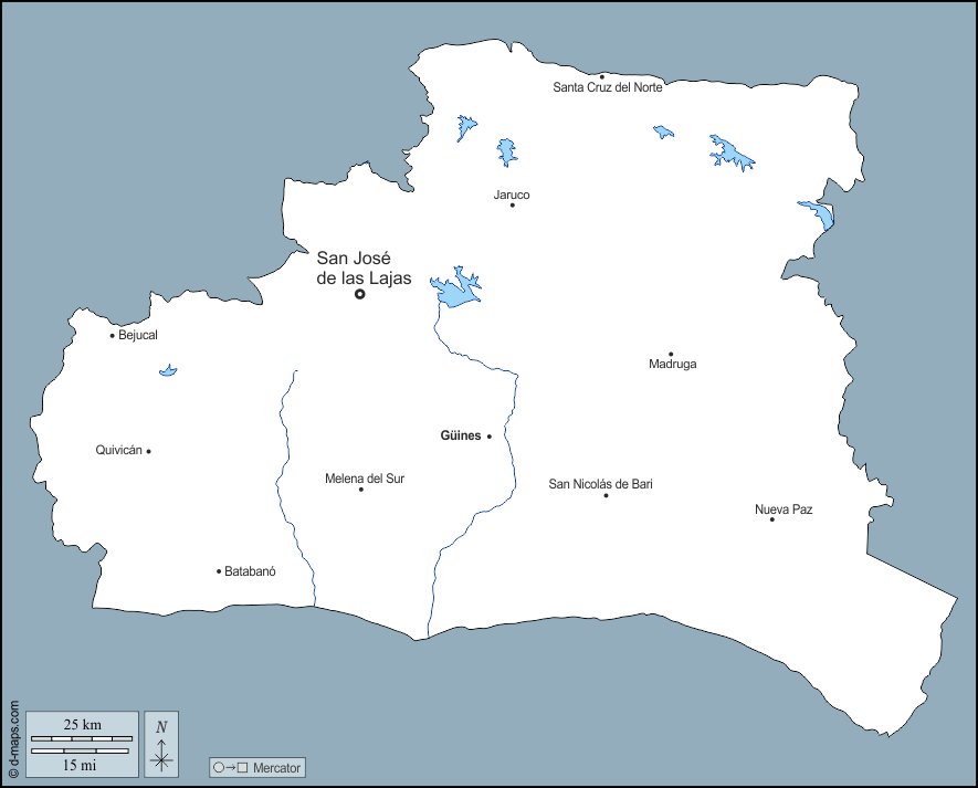 Americhe > Cuba > Mayabeque > contorni, idrografia, principali città, nomi