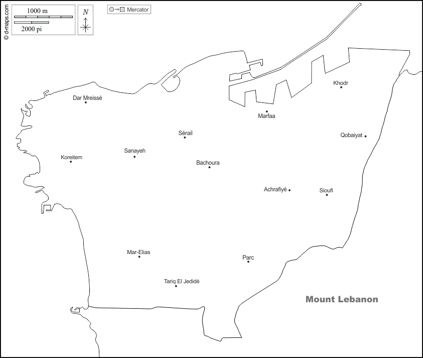 d-maps > Asia > Libano > Beirut > frontiere, principali città, nomi, bianco