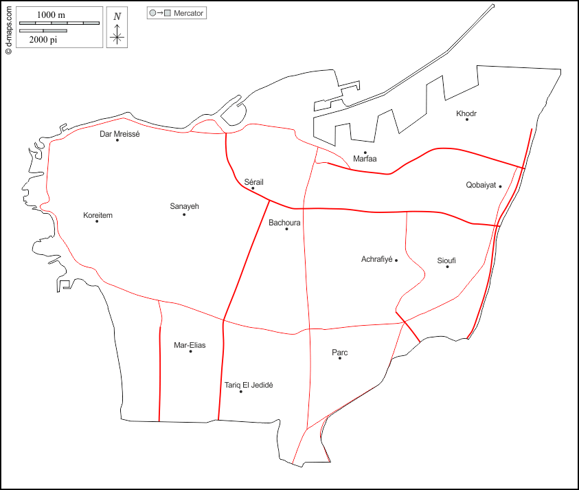 Asia > Libano > Beirut > contorni, principali città, strade, nomi, bianco