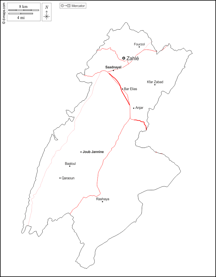 Asia > Libano > Beqā > contorni, principali città, strade, nomi, bianco