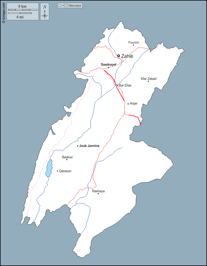 Asia > Libano > Beqā > contorni, idrografia, principali città, strade, nomi