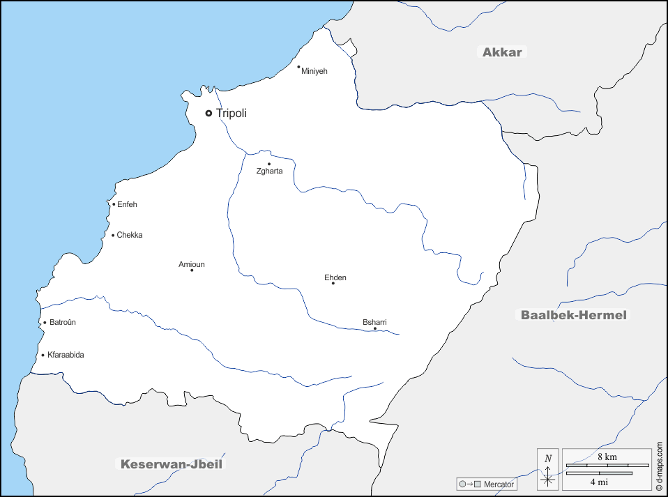 Asia > Libano > Nord Libano > frontiere, idrografia, principali città, nomi