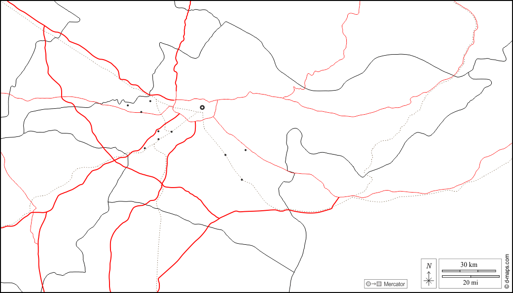 d-maps > Asia > Iran > Teheran > frontiere, principali città, strade, bianco