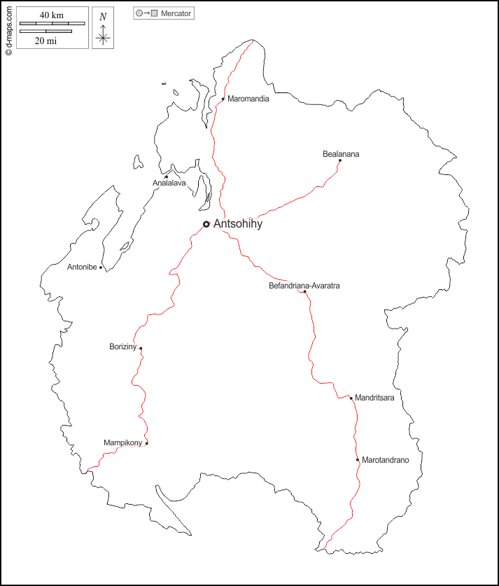 d-maps > Africa > Madagascar > Sofia > contorni, principali città, strade, nomi, bianco