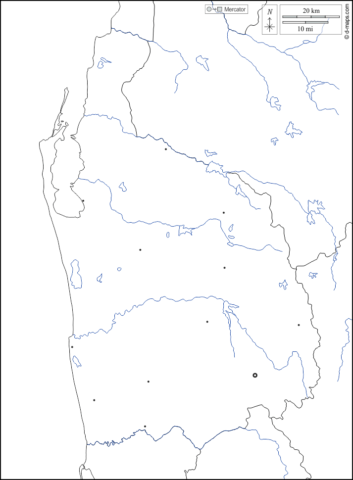 d-maps > Asia > Sri Lanka > Provincia Nord-Occidentale > frontiere, idrografia, principali città, bianco