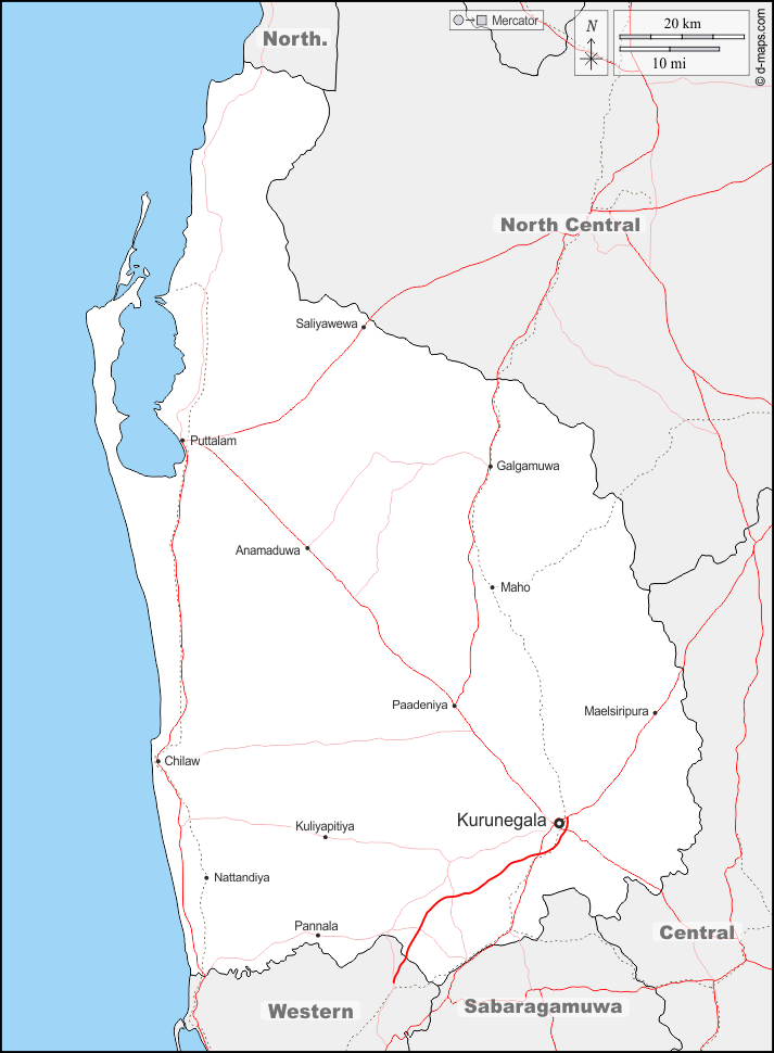 d-maps > Asia > Sri Lanka > Provincia Nord-Occidentale > frontiere, principali città, strade, nomi