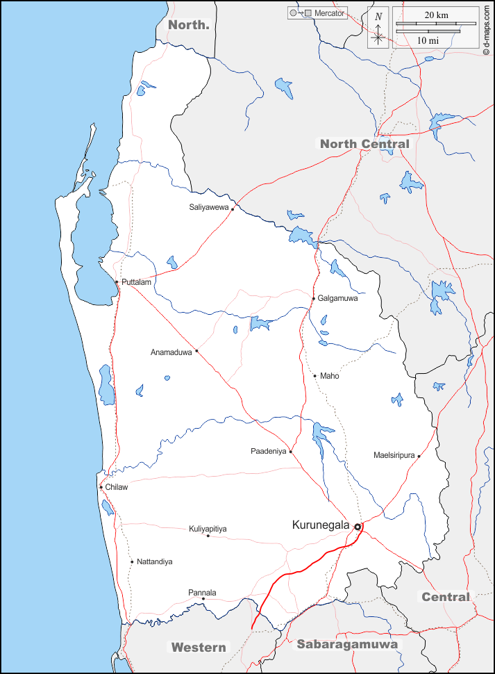 d-maps > Asia > Sri Lanka > Provincia Nord-Occidentale > frontiere, idrografia, principali città, strade, nomi