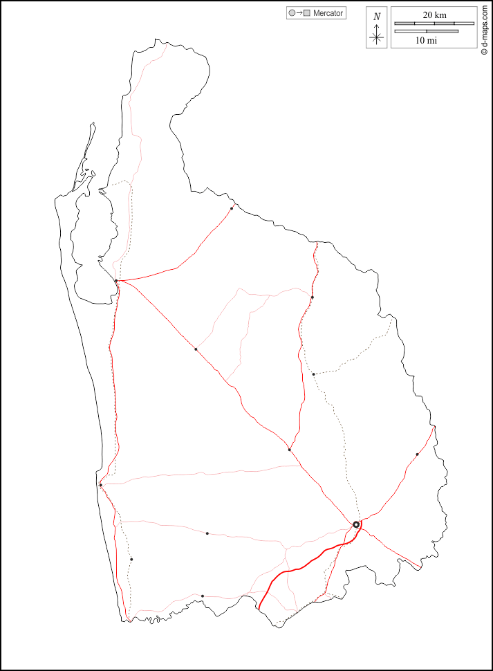 d-maps > Asia > Sri Lanka > Provincia Nord-Occidentale > contorni, principali città, strade, bianco