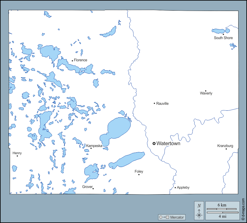 d-maps > Stati Uniti d'America (USA) > Dakota del Sud > Contea di Codington > contorni, idrografia, principali città, nomi