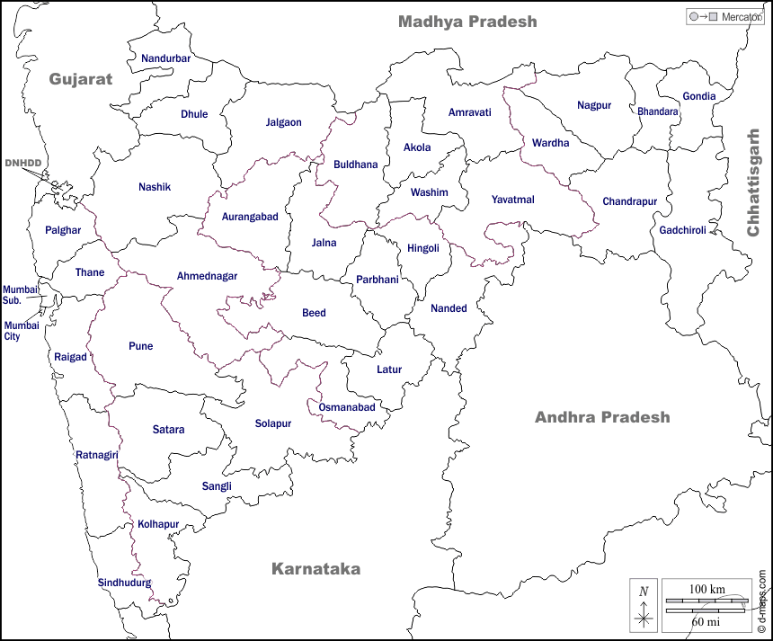 d-maps > Asia > India > Maharashtra > frontiere, distretti, nomi, bianco
