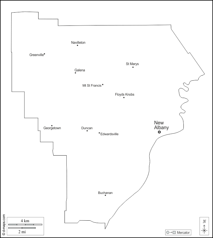 d-maps > Stati Uniti d'America (USA) > Indiana > Contea di Floyd > contorni, principali città, nomi, bianco
