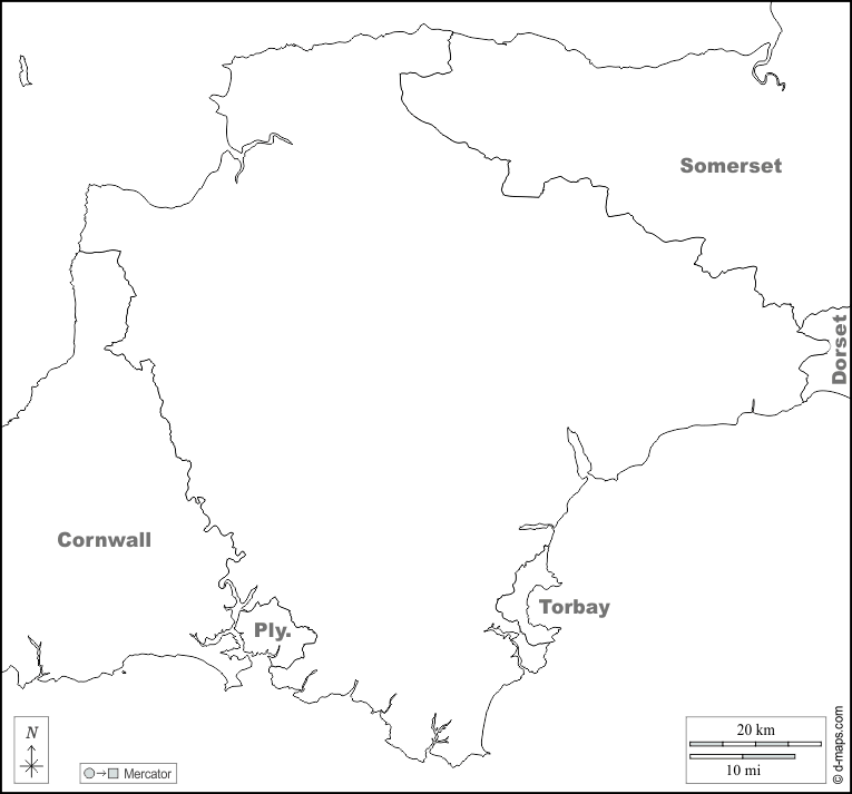 d-maps > Europa > Regno Unito > Devon > frontiere, nomi, bianco