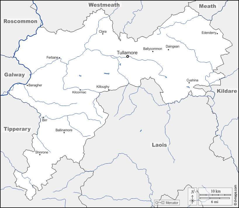 Europa > Irlanda > Offaly > frontiere, idrografia, principali città, nomi
