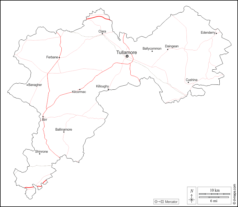 Europa > Irlanda > Offaly > contorni, principali città, strade, nomi, bianco