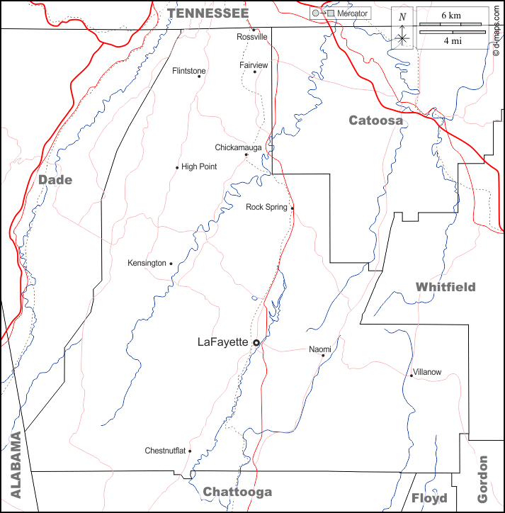 Chestnutflat - Chickamauga - Fairview - Flintstone - High Point - Kensington - LaFayette - Naomi - Rock Spring - Rossville - Villanow