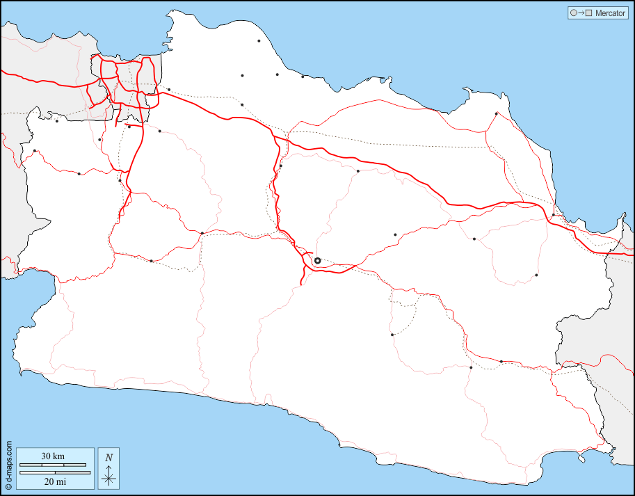 アジア > インドネシア > 西ジャワ州 > 境界, 主要都市, 道路