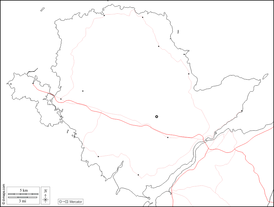 d-maps > フランス > イギリス > アングルシー島 > 境界, 主要都市, 道路, 白い