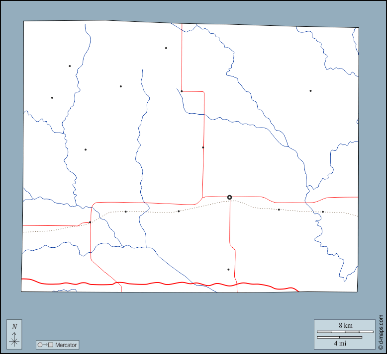 d-maps > アメリカ合衆国 > イリノイ > ウェインカウンティー > 輪郭, 川と湖, 主要都市, 道路