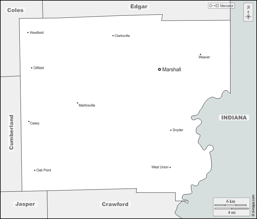 d-maps > アメリカ合衆国 > イリノイ > クラーク郡 > 境界, 主要都市, 名前