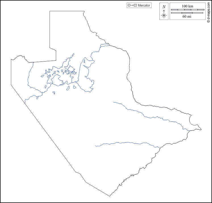 d-maps > アフリカ > ボツワナ > セントラル地区 > 輪郭, 川と湖, 白い