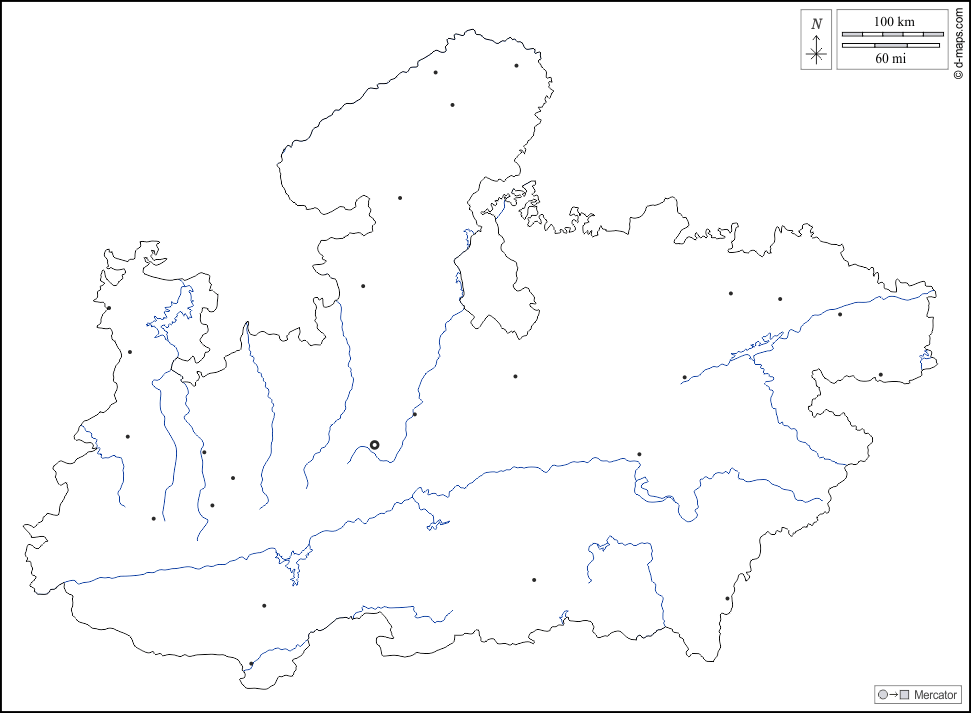 ビンド、ボパール、ブルハンプル、チンドワラ、ダモー、デワス、ダール、グナ、グワリオール、インドール、ジャバルプル、カンドワ、マンドサウル、モレナ、ムルワラ、ニームチ、ラトラム、レワ、サガル、サトナ、シヴプリ、シディ、シングラウリ、ウッジャイン、ヴィディシャ。