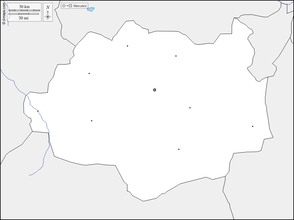 d-maps > アジア > モンゴル > ドンドゴビ県 > 境界, 川と湖, 主要都市