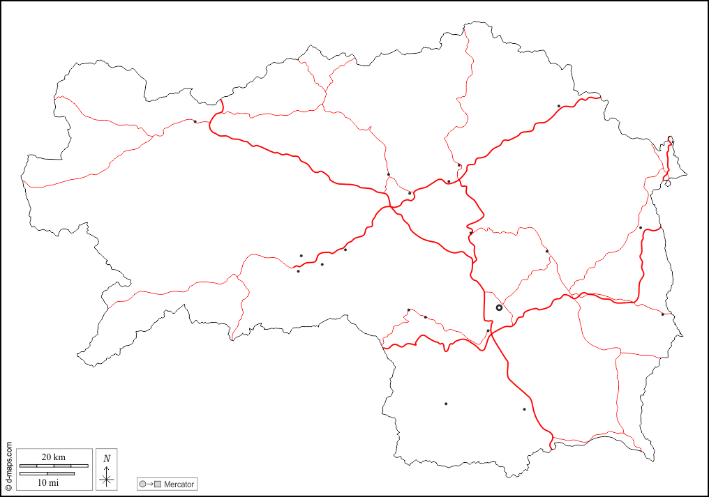 フランス > オーストリア > シュタイアーマルク州 > 輪郭, 主要都市, 道路, 白い