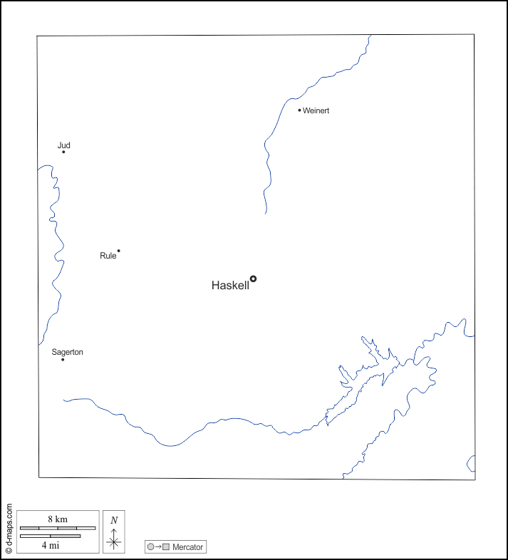 d-maps > Estados Unidos da América (USA) > Texas > Condado de Haskell > contornos, hidrografia, principais cidades, nomes, branco